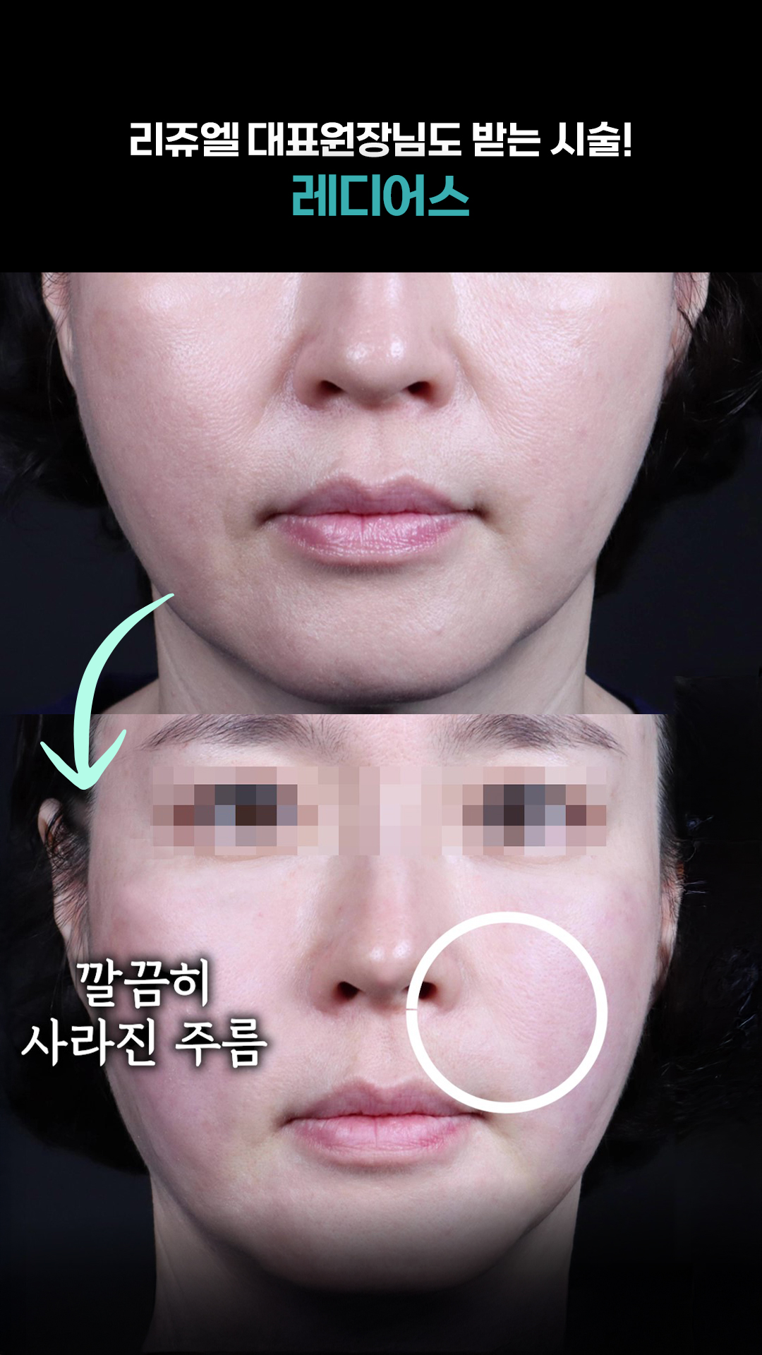 받자마자 시술효과가 눈에 딱 보였고, 붓기나 통증은 전혀 없었습니다!