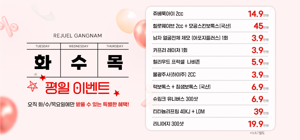*첫방문 이벤트는 리쥬엘에 처음 내원해 주시는 고객분들께 적용되는 혜택입니다.